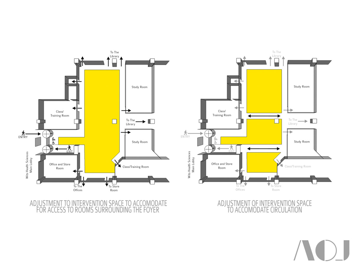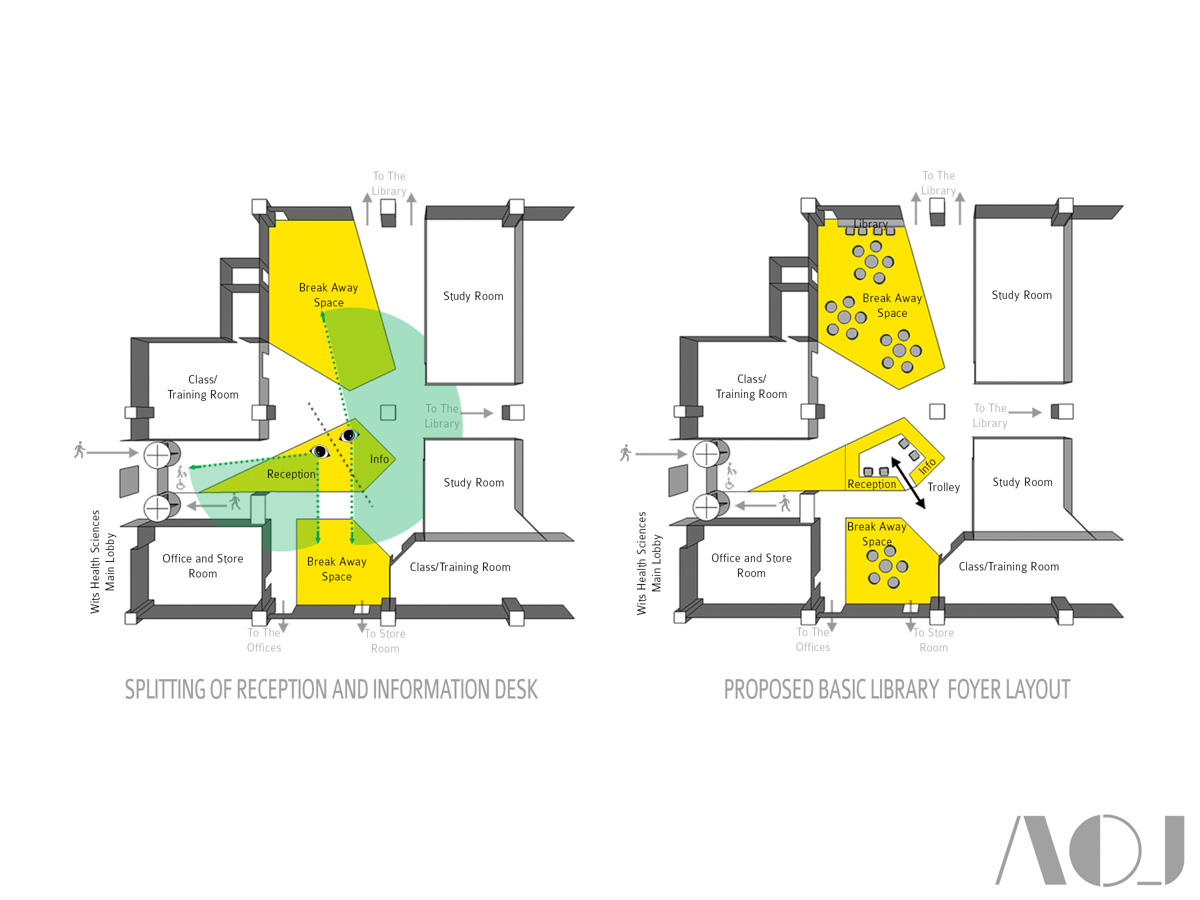 The design commenced with the identification of the spaces required within the new foyer and the mapping of movement through the foyer into the other library spaces beyond it. These spaces include; two break-away lounge spaces and a re-imagined reception counter designed to be more focussed on how to access and use the library e-resources than the issuing and returning of physical books. In addition to being lounge spaces the two breakaway spaces were to be designed to accommodate an existing collection of books and artworks (paintings and sculptures) donated to the library.