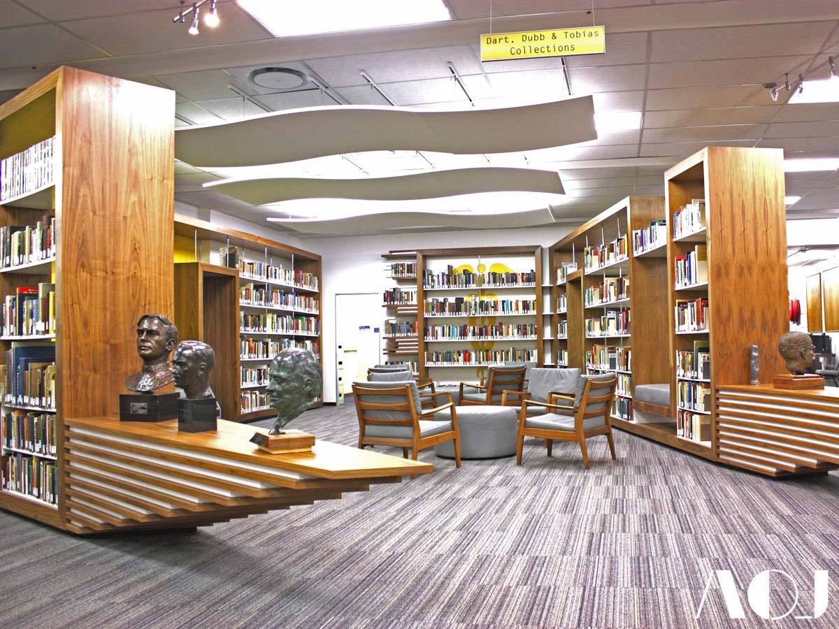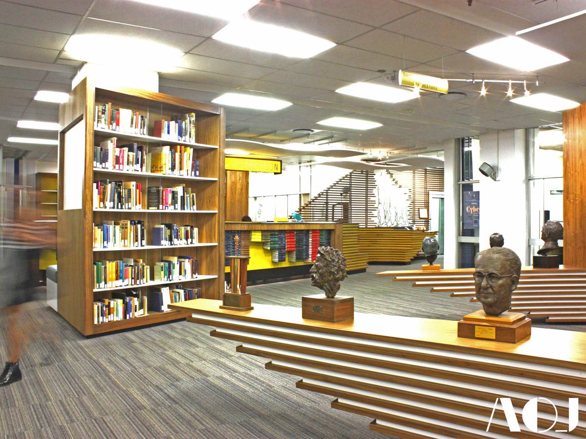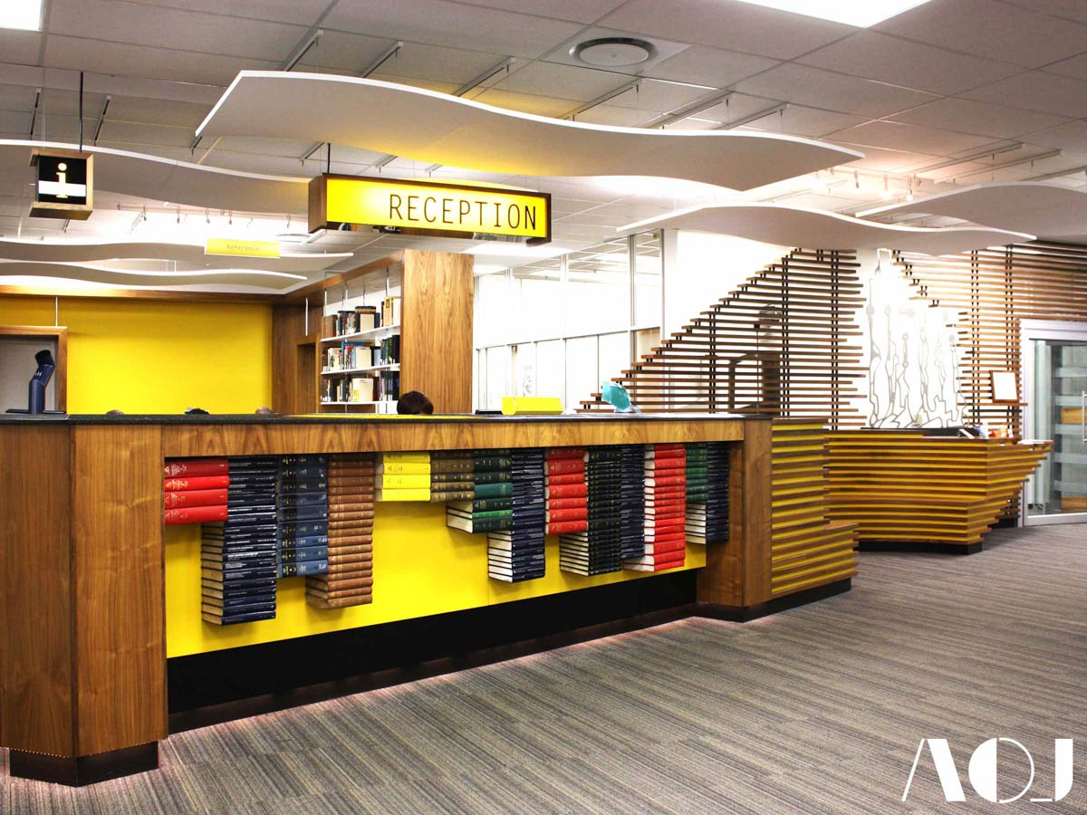 “In 2013 the head librarian had identified that the reception foyer in the library was in need of a re-invention to keep in line with this evolution” says Mike Rassmann. Shortly after AOJ was appointed by the university to redesign this space and ensure the execution of the work was of the highest standards.